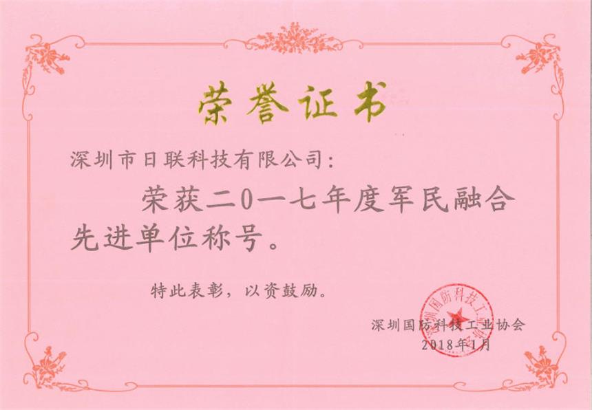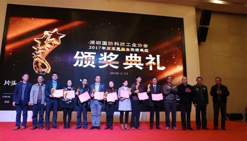 2018 年 1 月 11 日,深圳國防科技工業協會 2017 年會員大會暨軍民融合先進單位頒獎儀式在深圳麒麟山莊舉行,來自國防科工局、部隊軍代表、深圳市政府等領導嘉賓以及民參軍企業代表近400人出席了大會,一起分享軍民融合國家戰略的興國之舉和強軍之策。