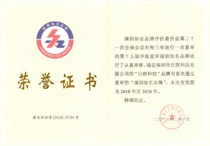 日聯科技自2017年3月28日啟動的第十五屆“深圳知名品牌”評價活動開始向評價委員會進行申報,評價委員會基于公司持續的卓越創新能力、科研能力、廣闊的市場前景及經過行業專家評價和品牌價值評估、評價委全體會議審議評選、深圳市公證處現場公證等程序,繼續授予日聯科技“深圳知名品牌”榮譽稱號。