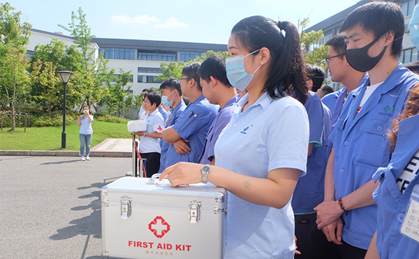 隨著警報聲響起,各部門員工在緊急小組成員們帶領(lǐng)下進行有序疏散撤離,到達安全區(qū)域后人員按部門整齊站隊,各部門負責(zé)人清點人數(shù)并報告撤離情況,緊接著開展了滅火器、消防栓、急救包等各項滅火救援器材的實戰(zhàn)演練。
