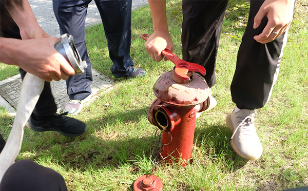 專業(yè)人員指導(dǎo)消防栓的使用