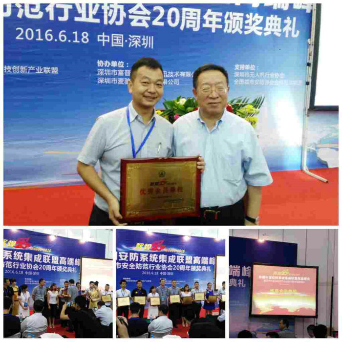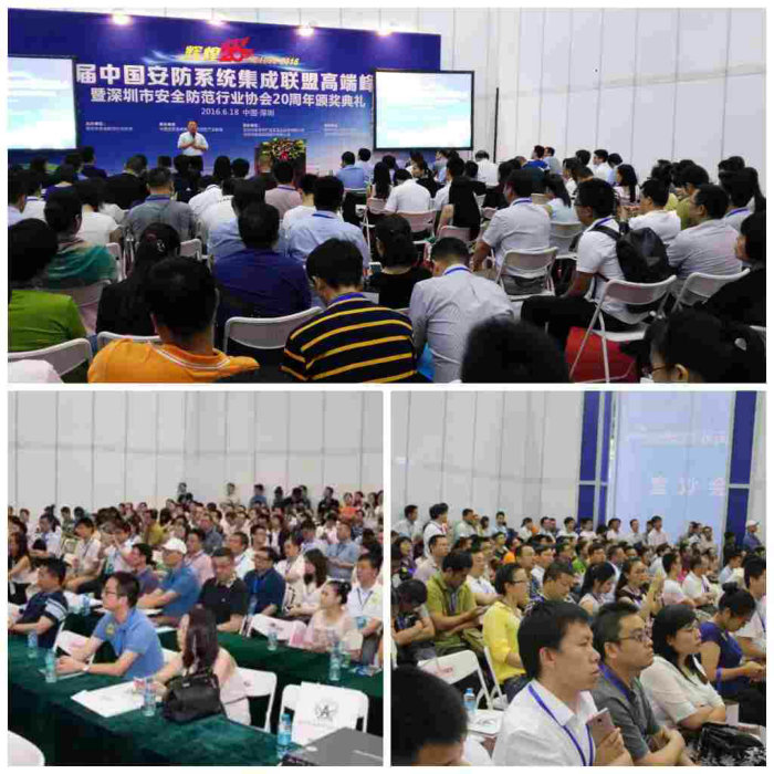 2016年6月18日,由深圳市安全防范行業協會主辦,中國安防系統集成科技創新產業聯盟承辦的“2016首屆安防系統集成聯盟高端峰會暨深圳市安全防范行業協會輝煌20周年頒獎典禮”在深圳會展中心7號館會議室成功舉辦,現場包含海康威視、神州數碼、日聯科技在內的300余位會員企業代表參加了會議。